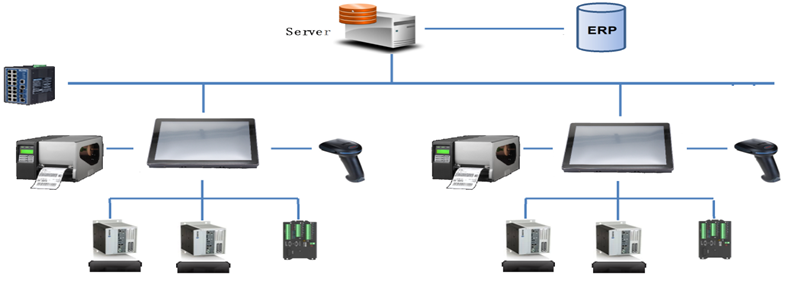 MES下層SCADA數據采集與監(jiān)控控制系統(tǒng),SCADA可以連接PLC,傳感器、RFID讀寫器、 條碼掃描槍、條碼打印等。